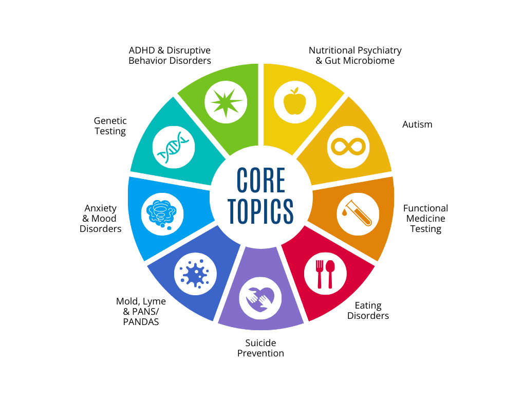 - Functional and integrative medicine approaches for conditions like ADHD, autism, and mood disorders, building expertise in areas like ADHD & Disruptive Behavior Disorders, Autism, and Anxiety & Mood Disorders.